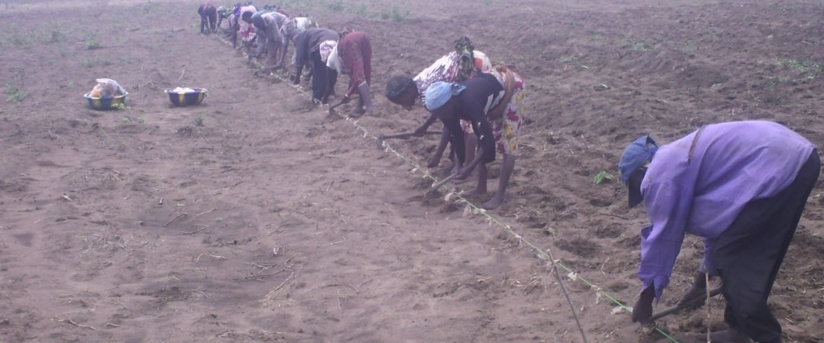 Pratique du semis en ligne avec respect des écartements par la méthode CEP (Champ-Ecole-Paysan) par une association partenaire d’ASoDéC au plateau des Bateke.